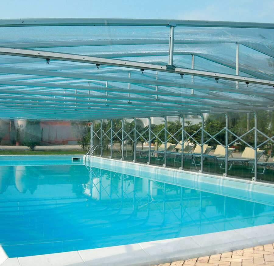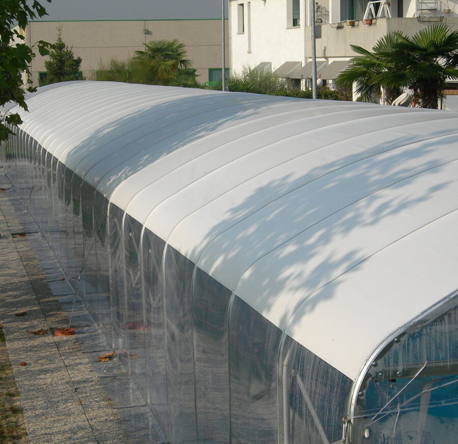 Il Copripiscina è disponibile esclusivamente nella versione con altezza utile cm 200, che permette di prolungare l’utilizzo della piscina anche nelle stagioni meno calde.