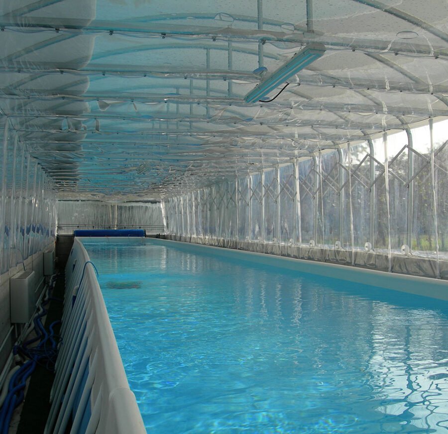 A richiesta, è disponibile la versione con doppio telo, che creando una camera d’aria consente di limitare la dispersione di calore. Se si utilizza un sistema di riscaldamento di aria e acqua è possibile fare il bagno anche quando il tempo normalmente non lo permetterebbe.