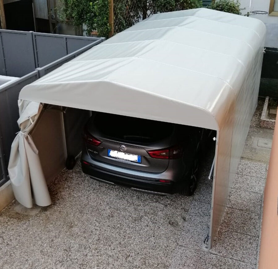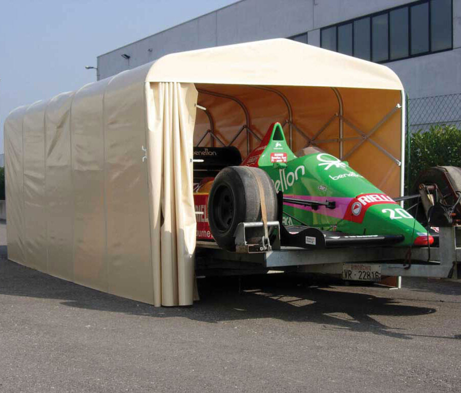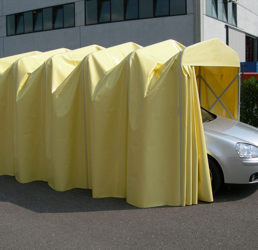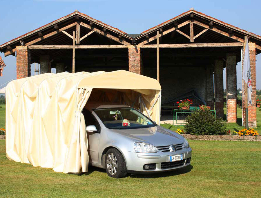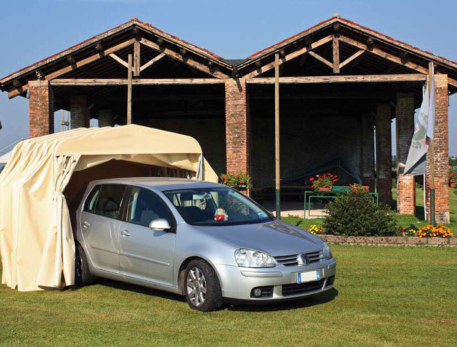 Ses mesures permettent en effet de couvrir en manière optimale des voitures de toutes tailles, mais ils vous permettent aussi de l’utiliser comme stockage pour le matériel et les machines ou comme tunnel de liaison.