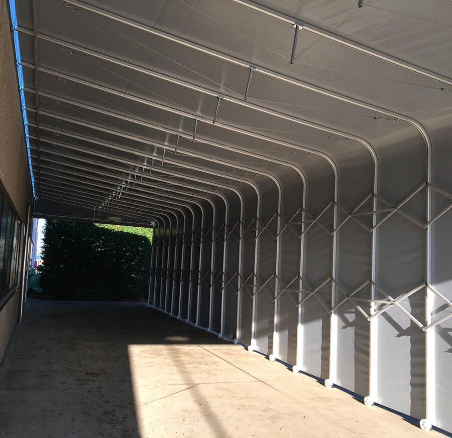 A partir de la largeur de 600 cm, la structure sera renforcée par des traverses en aluminium et des éléments de renfort sur chaque profil